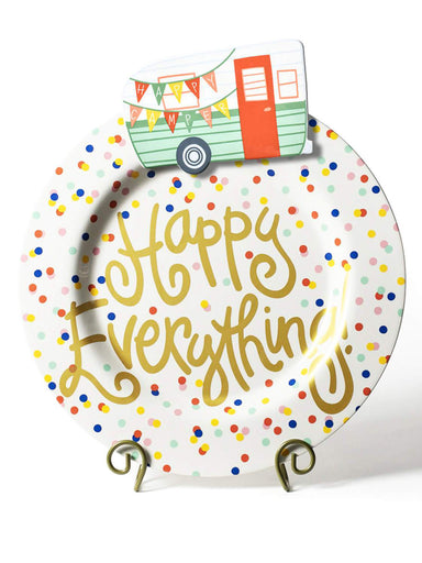 Airy and vibrant polka dots with the gold phrase "Happy Everything" will make you happy and is a cause for celebration in and of itself on this pla...