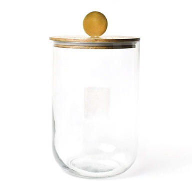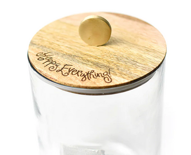 Add style and function to your countertop organization with our Big Wooden Lid Happy Everything! Glass Jar. The clear glass and sleek wood top ensu...