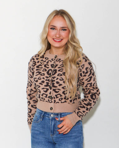 Unleash your wild side with our Leopard Print Cardigan! Made with soft and comfortable fabric, this cardigan features a fierce leopard print that w...