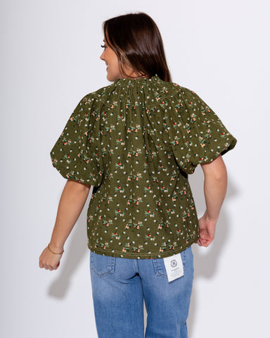 Embrace fall in style with the Evergreen Puff Sleeve Corduroy Flower Top. Crafted in a rich evergreen hue, this corduroy top features playful puff ...