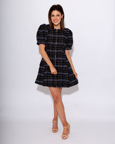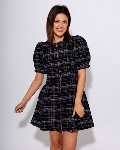 This black plaid mini dress combines playful puff sleeves with a flattering short length for effortless style. Featuring a convenient front zipper ...