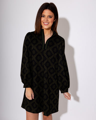 Effortlessly chic, the Geometric Print Long Sleeve Mini Dress is the perfect mix of playful print and timeless style. Designed in a warm olive hue ...