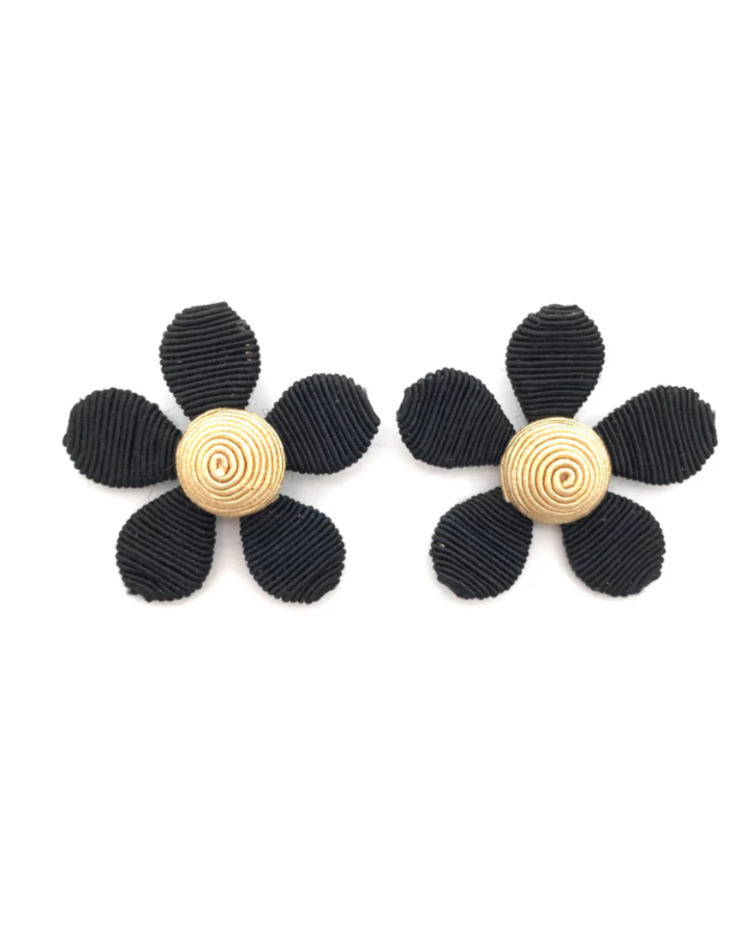 Elevate your everyday look with the Forget Me Not Stud Earrings — a stunning blend of artistry and elegance. These 1.5-inch diameter studs are meticulously hand-wrapped with soft silk cord in classic black and warm tan hues, creating a unique texture that feels as good as it looks. Lightweight and versatile, these earrings add a subtle pop of color and handcrafted charm to any outfit, from casual brunches to evening outings. Perfect for those who appreciate delicate details with a bold twist.