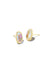 A polished pair of studs in our signature shape. The Grayson Gold Stud Earrings are sophisticated and unique, featuring our iconic silhouette inlaid with a genuine Dichroic Glass stone. Loved for its kaleidoscopic effect, Dichroic Glass is a custom stone created by layering iridescent foil between two pieces of glass.
