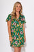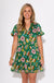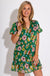 Bring fresh energy to your wardrobe with this vibrant mini dress featuring puff sleeves and a playful split neckline. The rich green background beautifully showcases pops of colorful florals that add a lively, feminine touch. Lightweight and effortlessly flirty, this dress is perfect for sunny days, weekend outings, or garden gatherings.