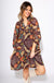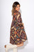 A fall favorite made for warm days, this lined mini dress features a flattering V-neckline with delicate ruffle trim and airy 3/4 balloon sleeves. The flowy A-line silhouette keeps things breezy and comfortable, while the rich brown background is accented with pops of teal, green, tan, and red in a vibrant floral print. It's the perfect blend of autumn vibes and warm-weather ease.