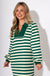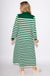Elevate your wardrobe with this long-sleeve stripe midi dress featuring a flattering collared V-neckline and solid contrast accents that add a touch of sophistication. Designed with convenient side pockets, it effortlessly blends style with functionality. Perfect for day-to-night wear, this dress offers comfort and elegance in one versatile piece.