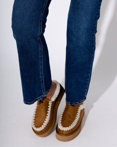 Slip into the Trinity Shoe in Camel, a stylish slipper designed for lounging and everyday wear. Featuring a cozy fuzzy lining and eye-catching brai...