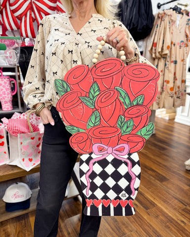 The Rose Vase Door Hanger is the perfect “jewelry” for your door! Show off your style with a beautifully designed door hanger featuring vase full o...