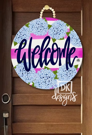 Hydrangea Welcome Large Hanger is a UV Printed Door hanger measuring 23" round that is perfect for indoor or outdoor use. All original designs are ...