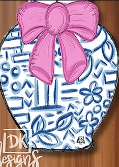 Chinoiserie Jar Pink Bow is a UV Printed Door hanger measuring 23.5" tall that is perfect for indoor or outdoor use. All original designs are print...