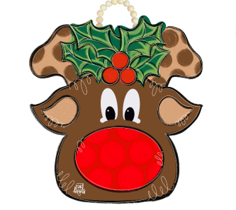 Add a dash of holiday whimsy with our 24" Reindeer Door Hanger, complete with a cheerful red polka dot nose and playful polka dot antlers. Accented...