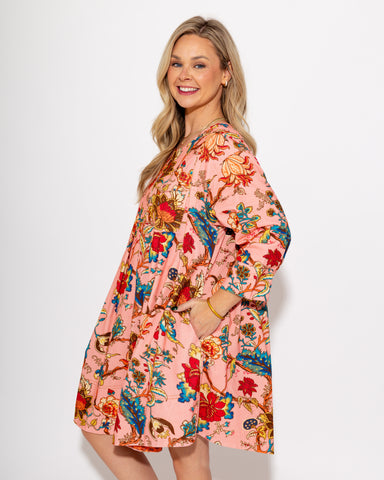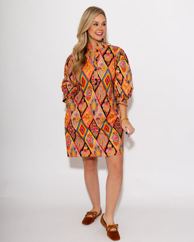 Bold florals meet timeless charm in this Puff Shoulder Boho Floral Dress. Designed with a flattering A-line silhouette, it features a ruffled neckl...
