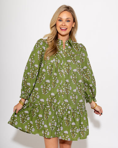 Step into effortless charm with this short sleeve mini dress, featuring a delicate floral print in shades of green and brown. The V-neckline and bu...