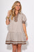 Smart meets sweet in this textured stripe mini dress, designed in a warm mocha mousse hue. With short puff sleeves, side pockets, and a contrasting inset spread collar, this look brings classic charm with a playful twist. Fully lined and woven for all-day comfort, it’s the effortless dress that does it all!