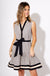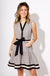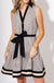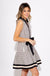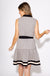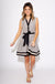 Fresh, flirty, and full of detail—this sleeveless mini dress features classic black vertical stripes with playful pops of color in the multicolor banded placket and ruffle hem. A removable self-tie belt lets you cinch the waist or wear it loose and breezy, while side pockets keep it functional and easygoing. Fully lined and lightweight, it’s the perfect warm-weather piece for brunch, travel, or casual days out.