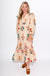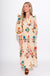 Elevate your everyday style with this Floral Puff Sleeve Midi Dress. Featuring a flattering V-neckline with delicate contrast stitching and charming ruffle shoulder accents, this dress blends feminine detail with effortless comfort. The 3/4 puff sleeves and ruffle hem add movement and playfulness, while side pockets bring practical functionality. Fully lined and crafted from lightweight woven fabric, it’s non-sheer and perfect for a breezy, polished look. The soft ecru background allows the floral print to pop, making it a versatile addition to any wardrobe.
