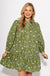 This floral mini dress is the perfect blend of charm and comfort. Featuring a beautiful olive background with a soft floral print, it’s designed with long puff sleeves, a button-down front, and handy side pockets for an effortlessly chic look. Lightweight and lined for easy wear, this dress is ideal for transitioning through the seasons in style.