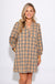 This taupe checker dress features elegant 3/4 puff sleeves and a flattering V neckline, combining classic style with a modern twist. Designed with convenient side pockets, it balances fashion and function effortlessly. Perfect for any occasion, its tailored fit and subtle pattern make it a versatile addition to your wardrobe.