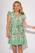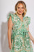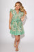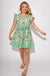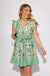 Sun-soaked and effortlessly pretty, this printed mini dress features fluttery ruffle sleeves, a keyhole mock neck with tie closure, and a flattering elastic waistband. The soft sage medallion and peachy floral print make it a fresh, breezy pick for all your sunny-day adventures.