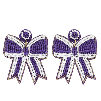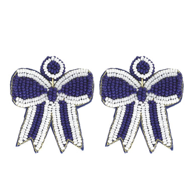 Add a touch of game day glam with our 2-Tier Striped Bow Ribbon Beaded Earrings. These statement earrings feature a striking design with striped bo...