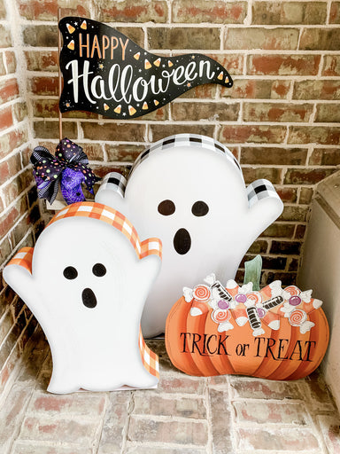 Set this Ghost Topper with his adorable "BOO" flag atop your welcome boards and stands to bring out some Halloween delight in your home decor! This...
