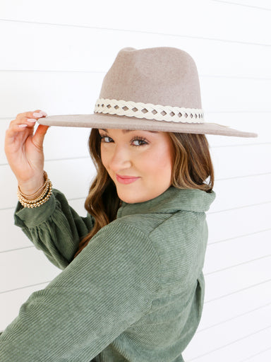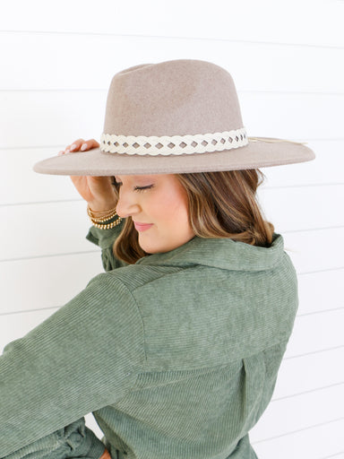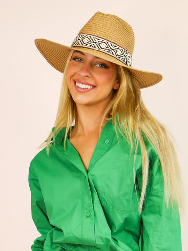 Step into sunny days with this chic straw hat, featuring soft, neutral suede bands delicately wrapped around the crown. Perfectly blending classic ...