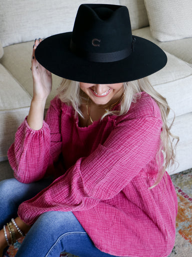 Get ready to turn heads with the Pray Hat. Such a staple for everyday looks.