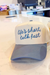 Made from durable canvas, this neutral-colored hat features a powder blue bill and matching "Life's Short, Talk Fast" embroidery, blending style with a subtle pop of color. Ideal for sunny walks, park outings, or casual wear, it offers both comfort and a bold statement to keep you motivated throughout your day.