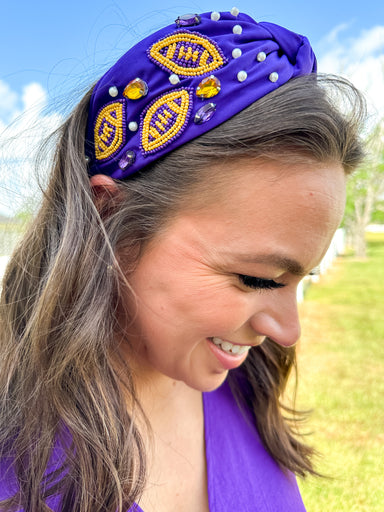 Elevate your look with the Purple Knot Metallic Beaded Headband! This stunning accessory features intricate metallic beads woven into a chic knot d...