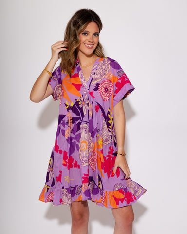 The Ivy Jane Back Tie Dress is a vibrant statement piece that transitions beautifully from fall to spring. Featuring a kaleidoscope-inspired print ...