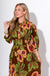 Embrace effortless elegance with the Ivy Jane Big Blooms Dress. Featuring a rich brown background accented by large green leaves and striking gold and pink blooms, this midi dress offers a captivating botanical look. The cinched waist flatters your silhouette, while puff sleeves and pleated details add refined charm. A collared neckline with three-quarter button closure completes the design, making it perfect for any occasion where you want to stand out gracefully.