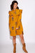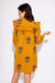 Brighten your wardrobe with the Ivy Jane Ruffled Yoke Shirt Dress in a rich mustard-gold floral print. Designed with a collared neckline, button-down front, and long sleeves, this mini dress blends timeless structure with feminine charm. Ruffle detailing at the yoke adds a playful touch, making it a standout piece for both casual days and special occasions.
