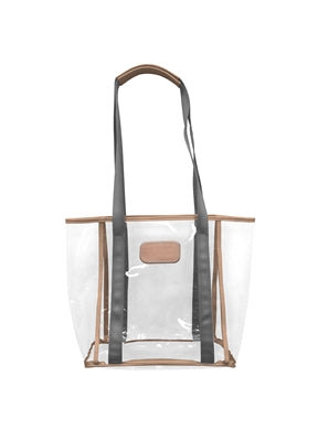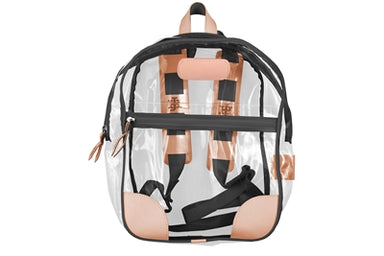 Clear Backpack made of Durable 30-mil PVC with Natural Leather and Coated Canvas trim Zippered closure with silver hardware Zippered pocket on t...
