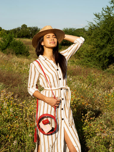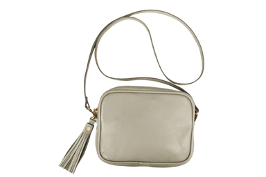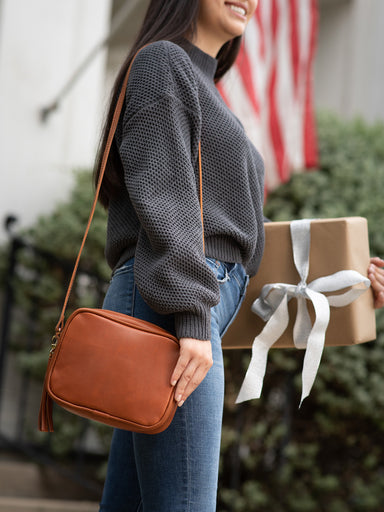 Natural Leather inside and out Zippered closure with brass hardware Natural leather crossbody strap Detachable leather fringe tassel Dimensions:...