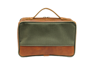 Oiled Natural Leather and Cotton Canvas Fully lined with our JH logo printed polyester fabric Zippered closure with antique brass hardware Zip...