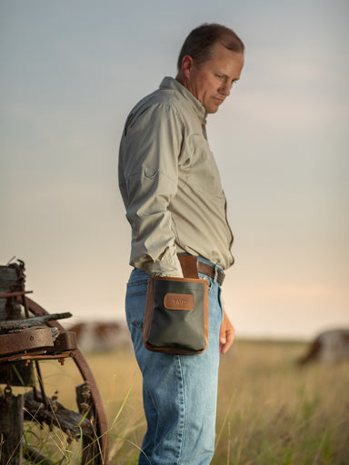 Perfect for skeet, pheasant, or quail shooting. Compartments for both live and spent shells. Wide belt loop. Vinyl Coated Canvas or Cotton Can...