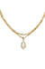 Inspired by the gentle sway of grass in the Texas landscape, the Adriana Scallop Frame Gold Multi Strand Necklace features a teardrop shape with scalloped border details. Set on a multi strand necklace with dainty chains, this style is a versatile piece for any outfit.