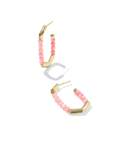 Our Sylvia Gold Pink Chalcedony Hoop Earrings combine crafted beads with our iconic oval shape for a beachy chic statement. These hoops add a pop o...