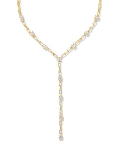 Glamour never goes out of style—and neither does sparkle! Celebrate both when you wear the Lexi Gold Y Necklace in White Crystal, a contemporary ch...