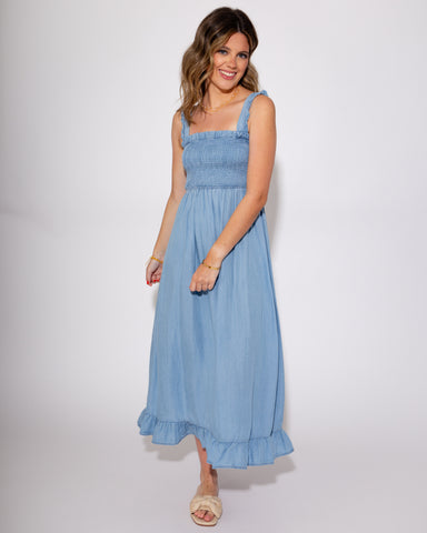 Effortlessly romantic with a hint of whimsy. This smocked bust midi dress features delicate tie straps and a playful mix of floral patterns that da...