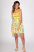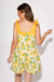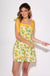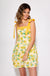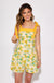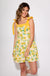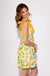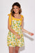 Bright and effortlessly feminine, this floral fit-and-flare romper features a pleated waist and flared shorts for a flattering silhouette. Adjustable straps and a square neckline are accented with a gold band, delicately detailed with gold floral accents. Set against a creamy custard background, the look feels fresh, radiant, and ready for sunny days and golden hour outings.