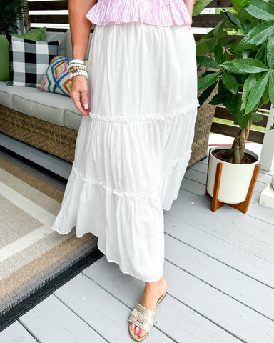 Meet your new favorite for the season—our stunning tiered midi-length dress, Portia! Featuring a flattering V-neckline and charming puff sleeves, t...