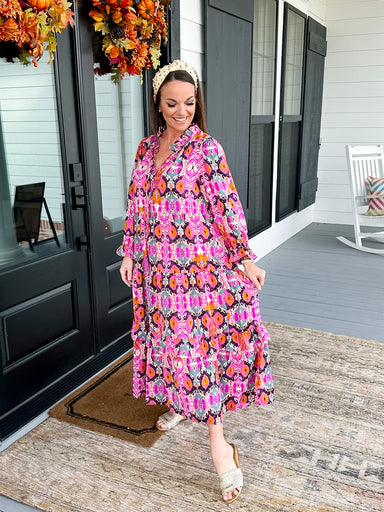 Bring effortless charm to your wardrobe with this Smocked Yoke Midi Dress, designed with the perfect blend of comfort and boho flair. Featuring a s...