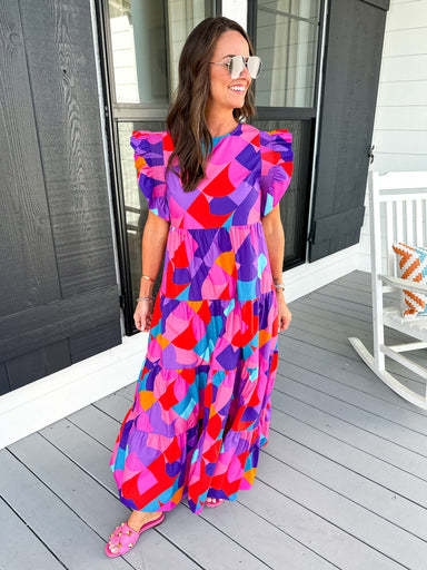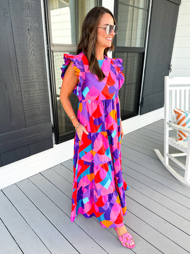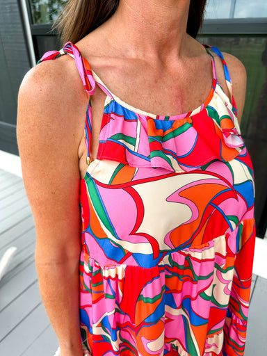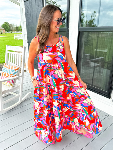 Bright, bold, and made to turn heads — this floral midi dress is everything you want for your next event (and then some). Featuring self-tie ribbon...