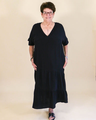 Introducing our Frayed Detail Soft Crinkle Gauze Midi Dress, where effortless elegance meets laid-back charm. Crafted from airy crinkle gauze fabri...