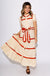 Elevate your wardrobe with our striking Scallop and Stitch Bow Tie Tiered Midi Dress. This long mock neckline dress effortlessly combines feminine details like short puff sleeves and a detachable waist tie with a chic button down design. The tiered scalloped detail adds texture and movement to create a truly stunning look.