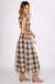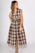 A classic redefined. This sleeveless plaid midi dress features a flattering V-neckline and a functional front zipper closure for an effortless, modern touch. The smocked waist creates a comfortable, cinched-in silhouette, while side pockets add everyday ease.