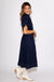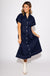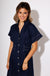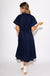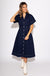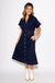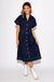 Navy Cinched Waist Button-Down Midi Dress