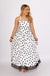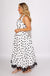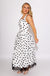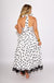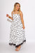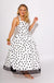 Feel confident and chic in our Polka Dot and Twirl Halter Midi Dress. The polka dot pattern and halter neckline add a playful touch, while the gathered skirt and lace trim hem detail exude elegance. The back self tie and invisible zipper ensure a flattering fit, and the lining provides comfort.